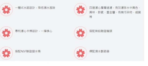 四道濾心層層過濾,有效濾除水中異色、異味、餘氯、重金屬、有機污染物、細菌等